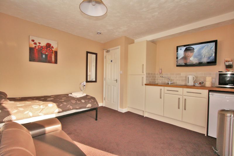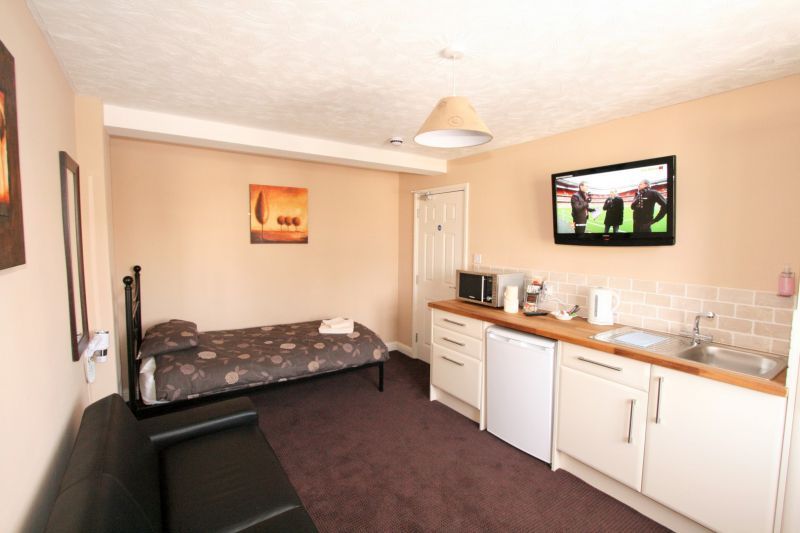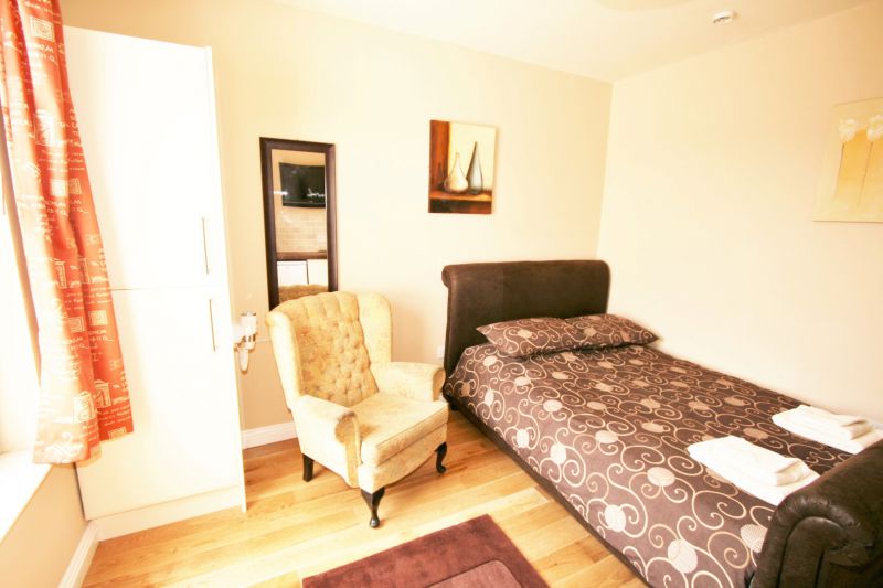 A single room with 1 Single Bed All Rooms have large fridge, microwave, cutlery, plates, tea & coffee making. Each room also contains a large LCD TV.