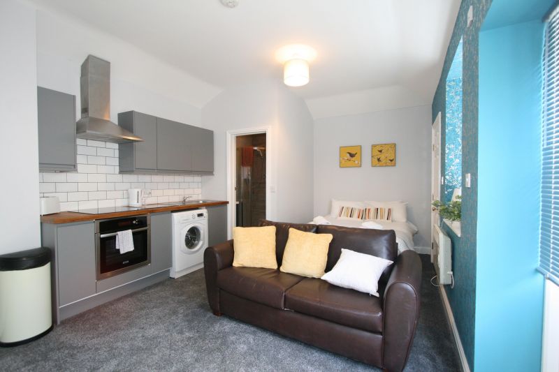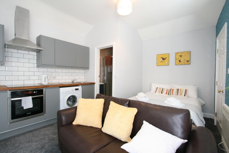 The studio Apartment is a cute detached building, converted in the rear garden from an original coach house dating to the 1800's. The property has a separate sleeping area with a full size bed. The bathroom has a shower. The kitchen is equipped fully including fridge & washing machine.